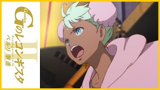 ”ベルリたち救出のため出撃したデレンセンが海賊部隊のメガファウナを急襲。地球周回軌道上での宇宙戦闘を強いられたベルリは、恩師との対決とは気づかずにG-セルフで迎撃してしまう。一方、キャピタル・アーミィはG-セルフとラライ ヤ・マンディの身柄も要求し、エルフ・ブルックのマスク部隊に続き、ベッカーのウーシァ隊を出撃させる。その背後にはスコード教のタブーを無視するほどの危機--宇宙からの脅威の存在があった。 (C) 創通・サンライズ”