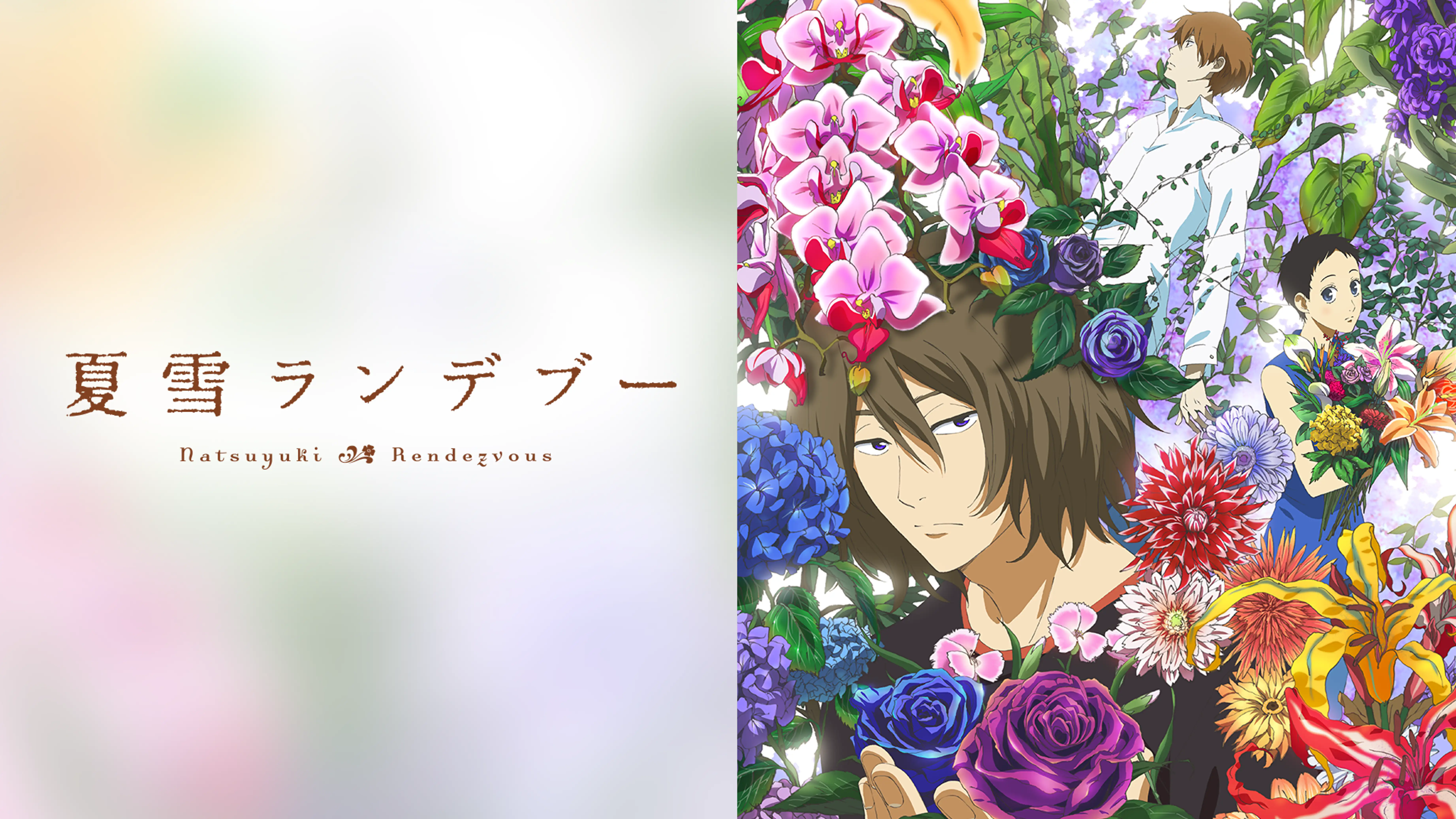”目つきは悪いが純情一途な花屋のバイト青年・葉月(はづき)亮介。彼がひそかに想いをよせるのは、店長の島尾六花(ろっか)。一目惚れした六花の花屋に通い詰め、バイト募集を機にそこで働くことに。念願叶ったものの、8つ年上の彼女 は恋愛を諦めている様子。目の前にいるのに何もできない自分に歯がゆさが募るばかり。ある日、とある用事で花屋の2階の彼女の自宅に呼ばれて行くと、そこにはなんと上半身裸の男。予期せぬ事態に半ば憤り、半ば呆れる葉月だったが、意外な事実が明らかに。その男は六花の同棲相手ではなく、すでに亡くなった彼女の旦那の幽霊(島尾篤)だという。六花には見えないらしい島尾(幽霊)は何かと葉月の恋路の邪魔をし、葉月もそれに屈せず押しの一点張りで頑張るがなかなか埒が明かない。そんな中、島尾(幽霊)が切り出した予想外の提案とは・・・。(C)2012 河内遙/祥伝社/アニメ「夏雪ランデブー」製作委員会 ”
